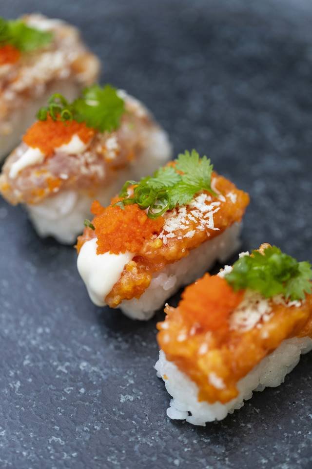 As novidades do menu principal também merecem destaque. O Tempurá de Shitake, por exemplo, é feito com atum selado, foie gras e calda de lichia. Outra sugestão é o Batera de Salmão feito com salmão batido, temperado com cebolinha e ovas, prensado com shari temperado e coberto com crisp de tempurá.
